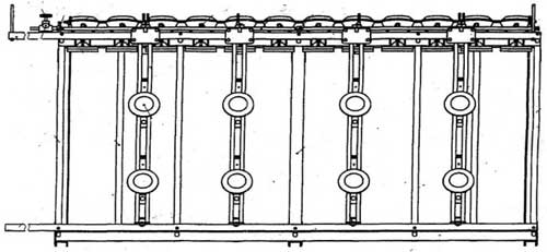 Частое расположение пневмокамер обеспечивает (при давлении в магистрали 10 кгс/см2) усилие до 5,8 т.с. на один погонный метр склеиваемого щита и его равномерное распределение по длине щита. Данное усилие склейки позволяет склеивать щит толщиной до 150 мм, при этом указанное давление на 1 см2 склеиваемой поверхности составляет 3,8 кг, что удовлетворяет техническим условиям склейки древесины практически для всех клееных массивов.