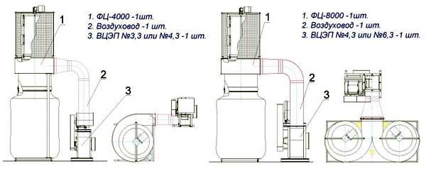 Применение данных аппаратов ФЦ-4000, -8000, -12000 совместно с пылевым вентилятором ВЦЭП, обеспечивающим необходимый напор, позволяет использовать данные аппараты в центральных системах аспирации вместо рукавных фильтров внутреннего исполнения. Аппараты ФЦ позволяют совместить достоинства стружкоотсосов с возможностями центральных систем.