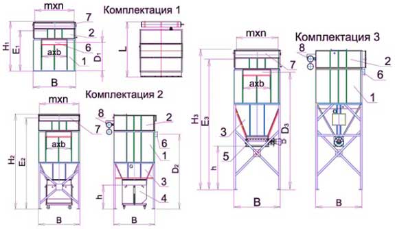 комплектация 3 - с устройством непрерывной выгрузки пыли (шлюзовой перегрузчик), позволяющим присоединить пневмотранспорт, скребковый или шнековый транспортер, мягкий контейнер и т.п.