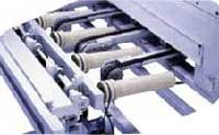 Механизм поперечной передачи и загрузки погонажа в туннель выполнен в виде наклонной роликовой секции и участка поперечных цепей для быстрой перекладки погонажа на основной внутренний транспортер. Данная система обеспечивает возможность работы в линии как с небольшой так и с очень высокой скоростью подачи, при этом сохраняется высокая аккуратность, так как все происходит без механического контакта с окрашенной поверхностью. Аналогичная роликовая система на выходе позволяет автоматически выгрузить заготовку из линии или подать ее на следующий этап обработки (автоматическая шлифовка, следующий покрасочный этап и проч.), что позволяет добиться высочайшей степени автоматизации производства и максимально устранить человеческий фактор. |