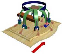 поверхностью детали, причем каждый пистолет точно копирует траекторию и угол наклона предыдущего (“Guns Tracking System”).