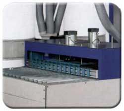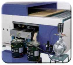 6. ПОКРАСОЧНАЯ СИСТЕМА: приспособлена для нанесения краски на ДВП, деревоплиту и пластик, оснащена 4 пистолетами-распылителями, 2 – спереди и 2 – сзади в сочетании с возвратно-поступательнвм механизмом непрерывного типа, в состав системы входит автоматическое устройство контроля за длиной заготовки, позволяющее автоматически включать и выключать краскопульты, главный конвейер системы имеет регулируемую скорость.