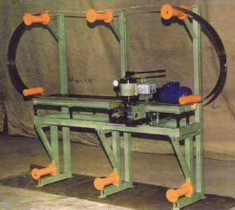В основу конструкции станка заложен принцип прокатки пил между вращающимися роликами, что позволяет увеличить срок службы пил, интесифицировать процесс пиления и улучшает качество пиломатериала.