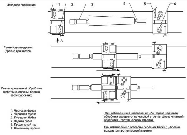 Применяется в качестве оборудования для производства оцилиндрованного бревна