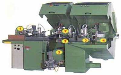 1) Торцовочный узел 2) узел фрезерования чашек 3) узел засверливания 4) узел фрезерования торцевого паза