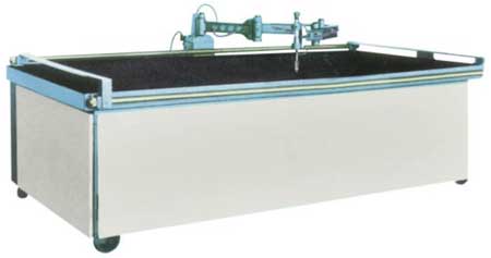Раскрой стекла по шаблону осуществляется с помощью выдвижного кронштейна с режущим инструментом. В целях обеспечения равномерности давления и глубины резания, для получения наилучшего результата при разломе, режущая головка снабжена пневмоцилиндром.