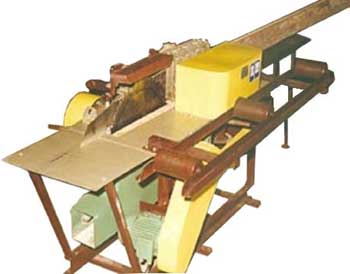 С помощью станка горбыль распиливается на рейки и дощечки, обеспечивая таким образом больший коэффициент использования древесины и тем самым повышая рентабельность производства.