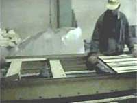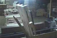 1. В начале линии в непосредственной близости от транспортера расположен ящик для проставочных блоков и три штабеля с досками (поперечные лаги, широкие и узкие настильные доски)