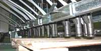 верхняя дека к проставочным блокам, а на втором нижние продольные лаги. Станки при этом работают непрерывно