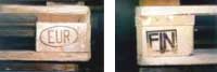 7. Далее уже собранный поддон попадает на маркировочный аппарат, где соответственно выбранным термолекалам на него наносятся выжженные оттиски