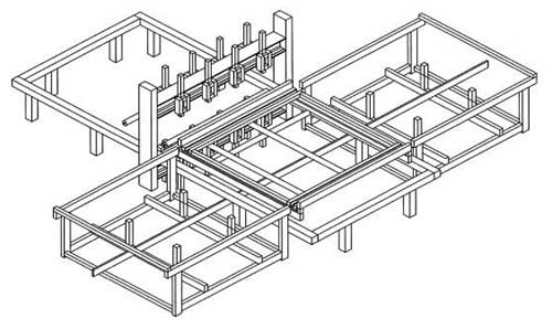 - система загрузки пакета заготовок поочередно работает с двумя укладочными столами, что исключает простои гвоздезабивного станка;