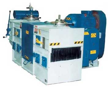 Подача материала осуществляется двумя верхними и четырьмя нижними приводными вальцами. Привод - от электродвигателя через ременную передачу. Настройка верхних валов по высоте обрабатываемого материала осуществляется маховиком через червячно-зубчатую передачу.