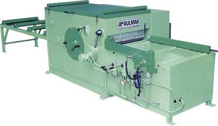 Конструкция жесткого 2-ух опорного вала пильного узла предусматривает установку 8-ми дисковых пил и позволяет распиливать брус большой ширины. Скорость подачи заготовки, подъем прижимных рябух и настройка на толщину заготовки осуществляется с пульта оператора с помощью гидравлики.